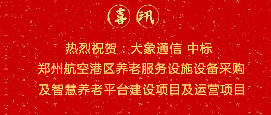 中標(biāo)喜訊 | 熱烈祝賀:大象通信中標(biāo)鄭州航空港區(qū)養(yǎng)老服務(wù)設(shè)施設(shè)備采購及智慧養(yǎng)老平臺(tái)建設(shè)項(xiàng)目及運(yùn)營項(xiàng)目