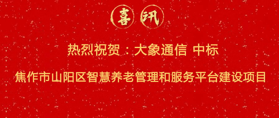中標(biāo)喜訊 | 熱烈祝賀:大象通信中標(biāo)焦作市山陽區(qū)智慧養(yǎng)老管理和服務(wù)平臺(tái)建設(shè)項(xiàng)目